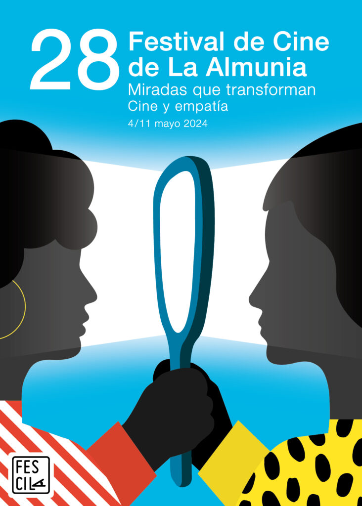 La imagen de la 28ª edición de Fescila es obra del diseñador zaragozano Pablo Berges. Ya firmó el cartel anunciador de 2018 y en esta ocasión, explica, ha apostado “por colores vibrantes y formas simples que sintetizan ese mensaje sobre la capacidad que tiene el cine para crear conexiones emocionales y transformar la mirada del espectador”. El cartel muestra a dos personas que más que reflejarse en un espejo, se miran una a otra a través de él. “El espejo ilumina la cara de ambas como si se tratase del haz de luz de un proyector. El cine también ilumina rincones de nuestro mundo y nuestra mente, nos permite ver y comprender a otras personas, lugares y formas de vida”, reflexiona el autor.
